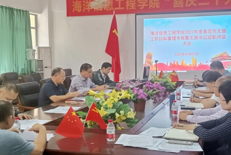 为深入贯彻落实习近平新时代中国特色社会主义思想和党的二十大精神,认真贯彻上级有关工作要求,提升基层党组织政治功能,促进支部战斗堡垒作用的充分发挥。3月1日,德赢Vwin官方区域合作伙伴党总支召开了基层党支部工作目标管理考核暨支部书记述职大会。学院党总支委员、教工支部和学生支部的多数党员及部分师生群众代表参加了会议,会议分别由学院党总支书记郑泽龙和副书记曾令伟主持。
