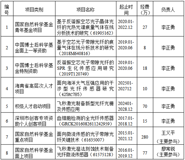 [24] Jian Tang, Zhe Zhang, Guolu Yin, Shen Liu, ZhiyongBai, Zhengyong Li, Mi Deng, Ying Wang, Changrui Liao, Jun He, Wei Jin, Gang-Ding Peng, and Yiping Wang, “Long period fiber grating inscribed in hollow-core photonic bandgap fiber for gas pressure sensing,”IEEE Photonics Journal 9(5), 7105307, 2017. (三区,IF=2.729)