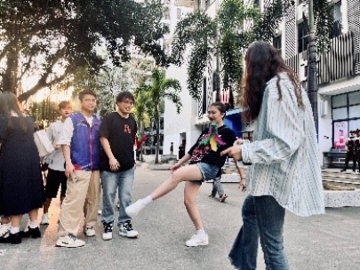二是压力“爆爆爆”。同学们将“气球”视作“压力”,两人一组用背紧靠,直至气球爆炸。目的是让同学们生活中遇到烦恼,学会沟通交流,协助解决问题。