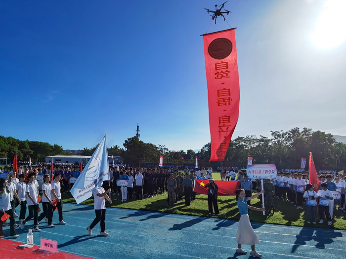 运动会在庄重的国歌声中拉开序幕。开幕式上,德赢官网学生方阵的同学们英姿飒爽、步履整齐,学生自制的无人机上悬挂着“自觉、自悟、自立、自强”的院训条幅在方阵前引领,充分展示德赢官网的专业特色;教工方阵的老师们昂首阔步,精神饱满,用笑容传达着他们积极向上、热情洋溢的精神风采。